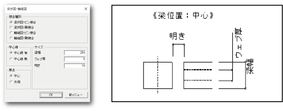 鉄鋼業における梁伏図、軸組図をはじめ、各種鉄骨の寸法を入力して、柱、接合部、ブレースを作図できます。